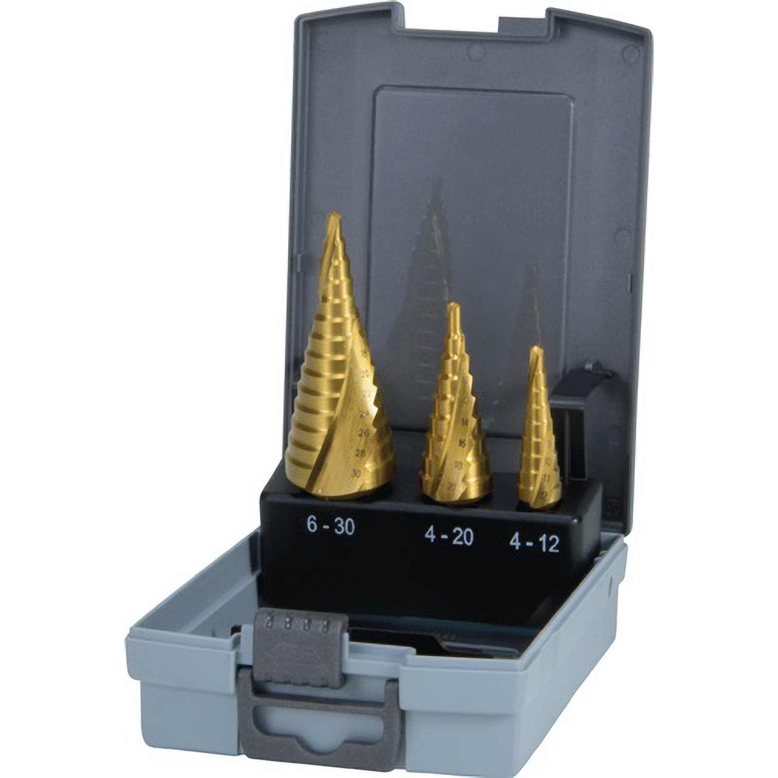 RUKO Stufenbohrersatz HSS-TiN spiralgenutet Gr. 0/9 / 1 / 2 3tlg. in Kunststoffkassette - 101026TRO