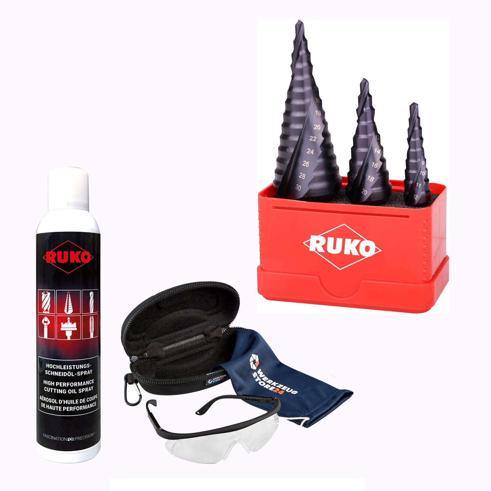 - Vielseitige Anwendung: Der RUKO Stufenbohrersatz eignet sich hervorragend für Stahl 1100 N/mm², rostfreien Stahl, Bronze und Gusseisen, Aluminium, Messing und Kunststoffe