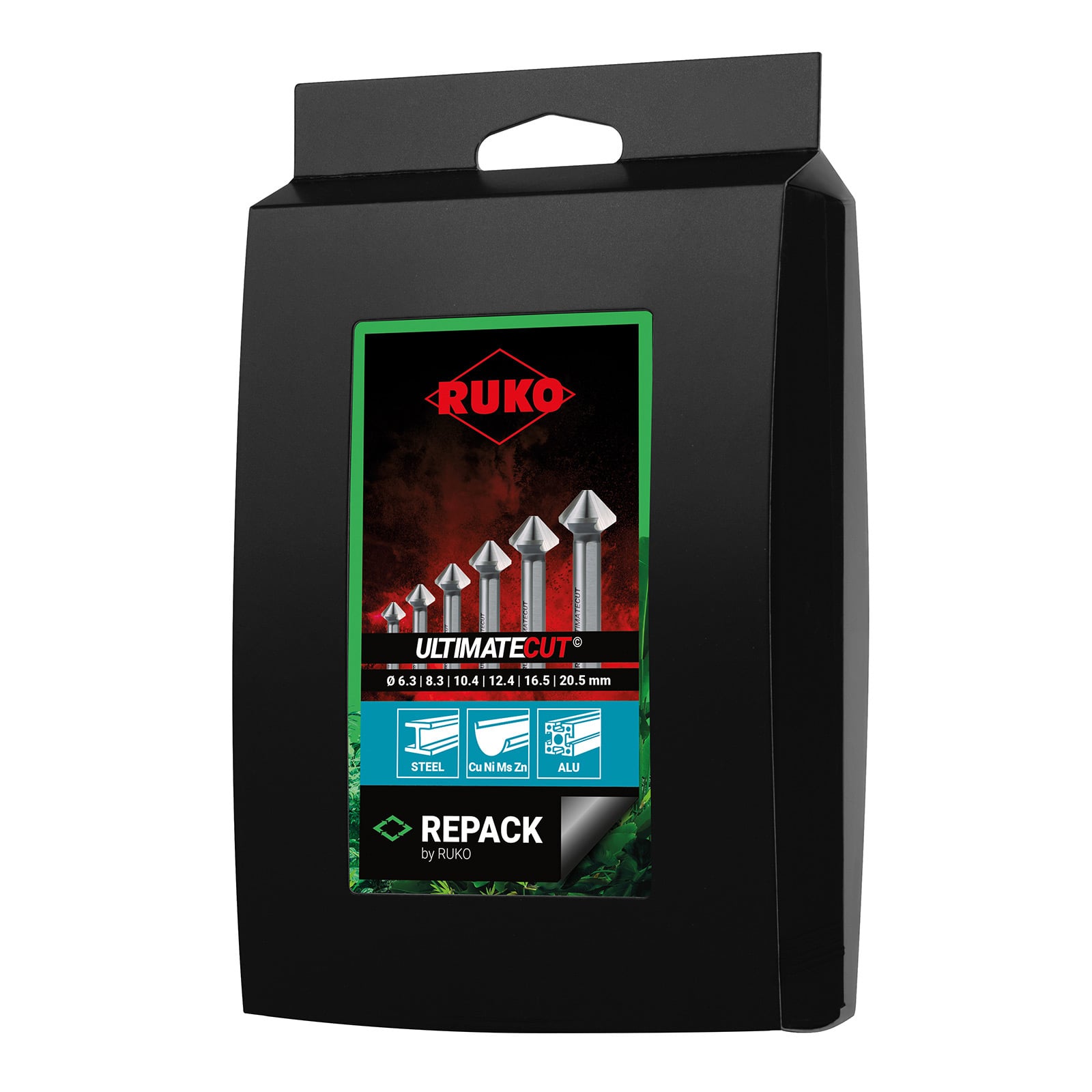 - 1x RUKO ULTIMATECUT 3S Kegel- und Entgratsenker-Satz HSS DIN 335 Form C 90° in REPACK 6 teilig