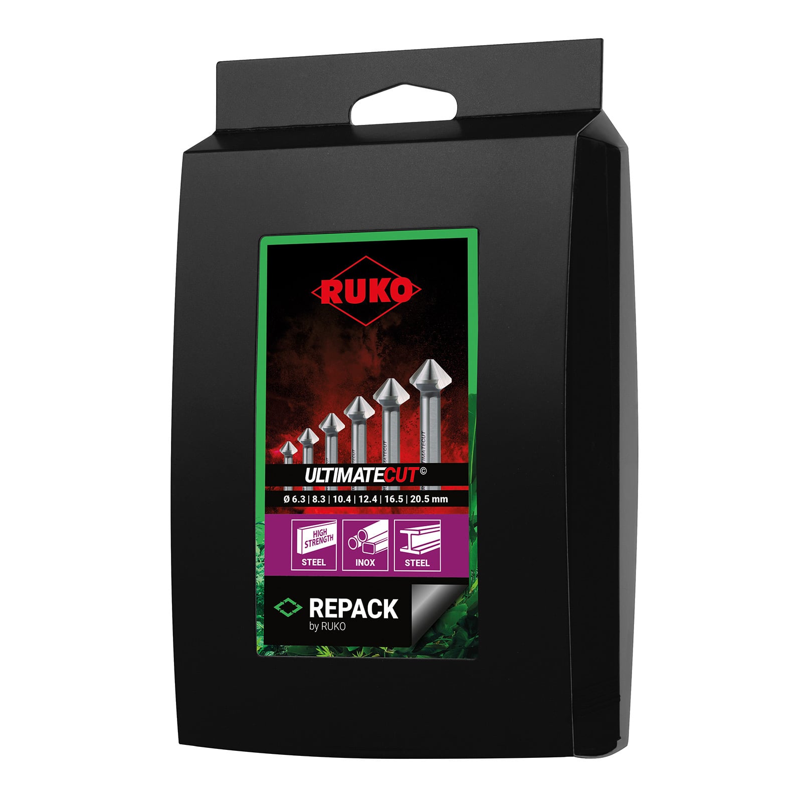 - 1x RUKO ULTIMATECUT 3S Kegel- und Entgratsenker-Satz HSSE-Co 5 DIN 335 Form C 90° in REPACK 6 teilig