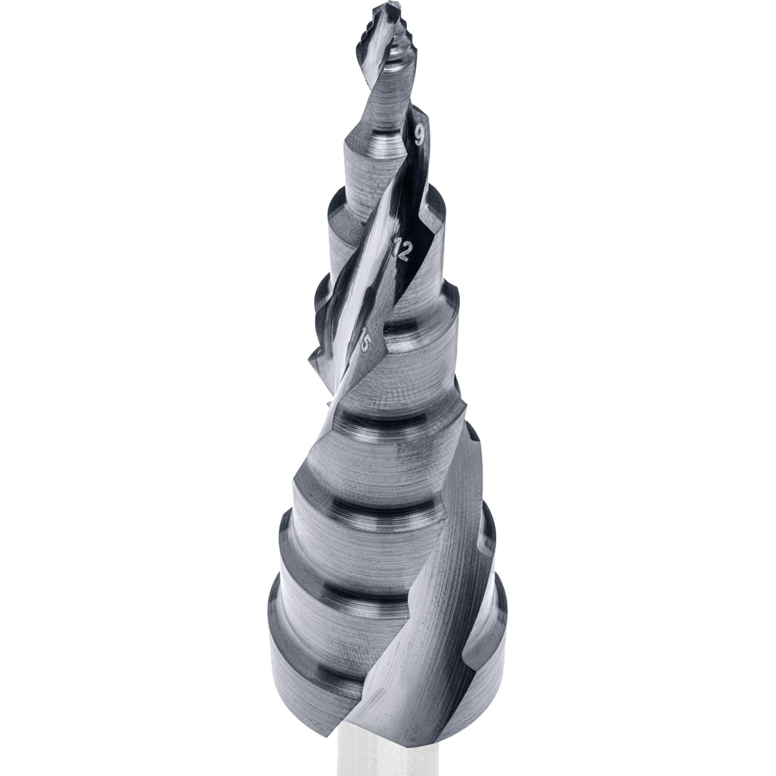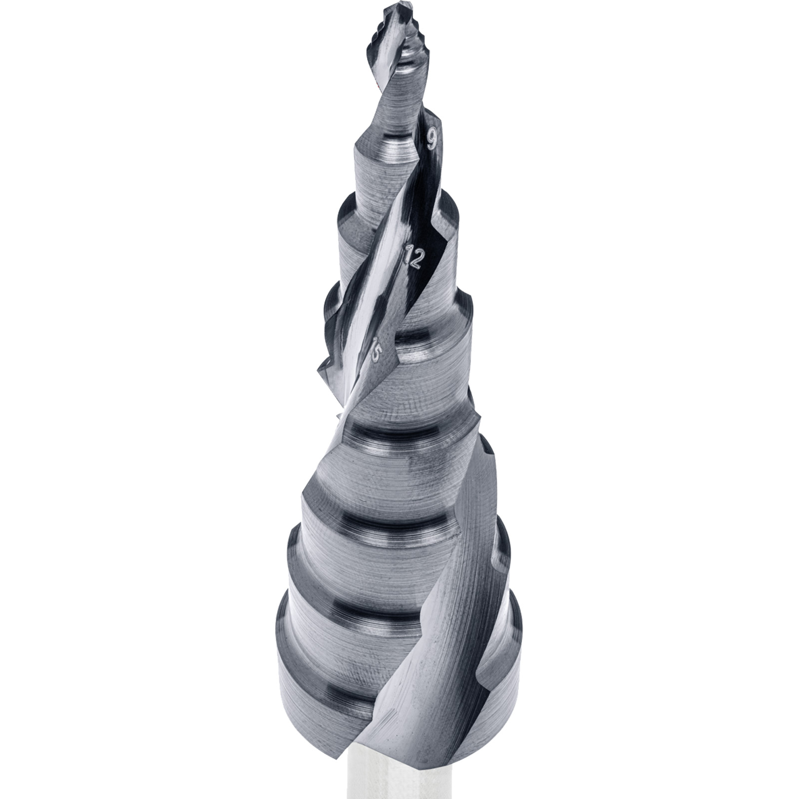 - Beim Bohrvorgang wird mit der jeweils nächsten Stufe entgratet.
