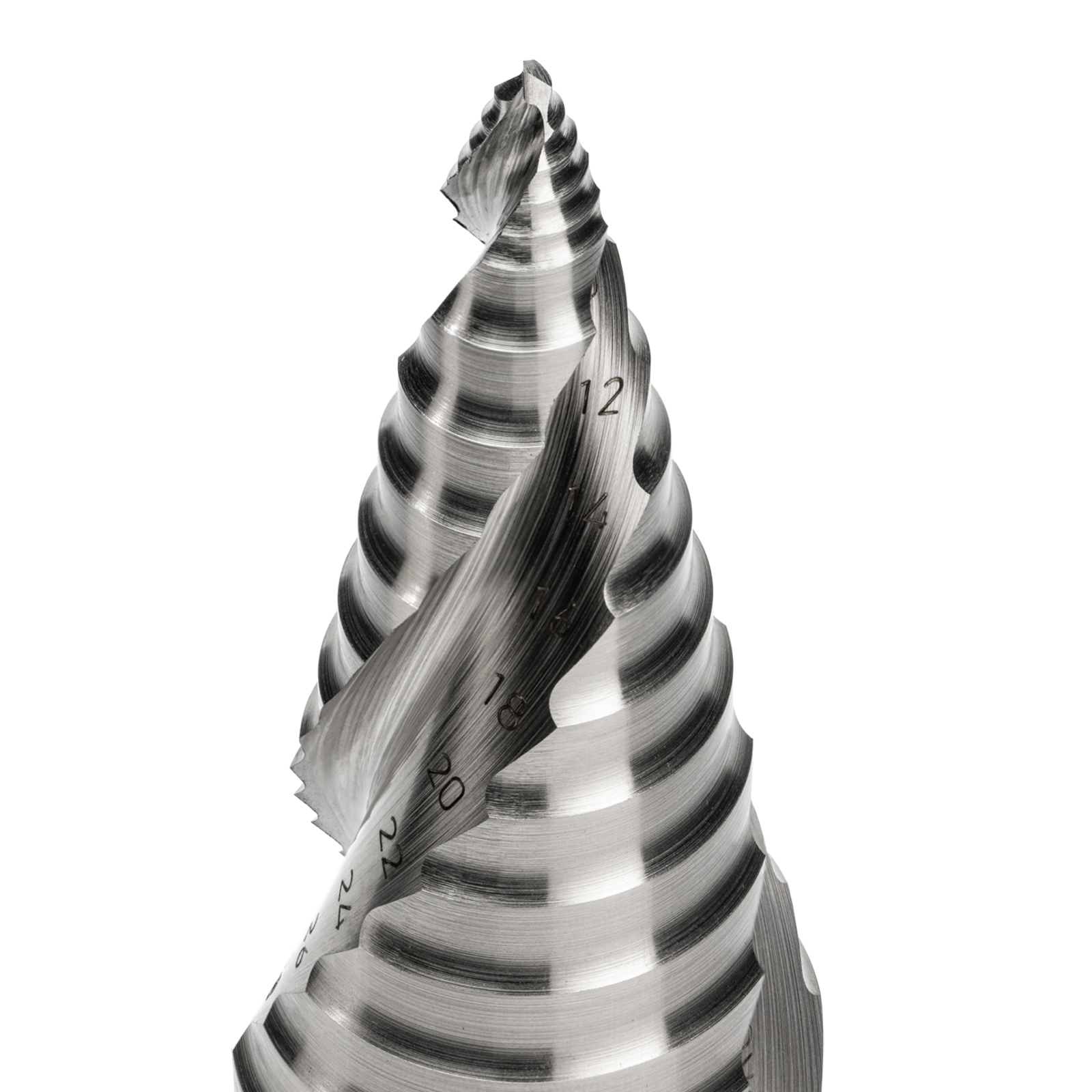 Effizienz und Präzision – entwickelt für maximale Leistung und Langlebigkeit bei der Zerspanung von Werkstoffen bis 4 mm Stärke. In einem Arbeitsgang werden Bleche angebohrt, aufgebohrt und entgratet. Ausgestattet mit der innovativen FLOWSTEP® Spitze, ermöglicht dieses Werkzeug ein schnelles und sicheres Anbohren. Mit 5 % Kobaltanteil für eine gesteigerte Härte und Verschleißfestigkeit, ideal für die Bearbeitung von robusten Werkstoffen wie Edelstahl und legierten Stählen.