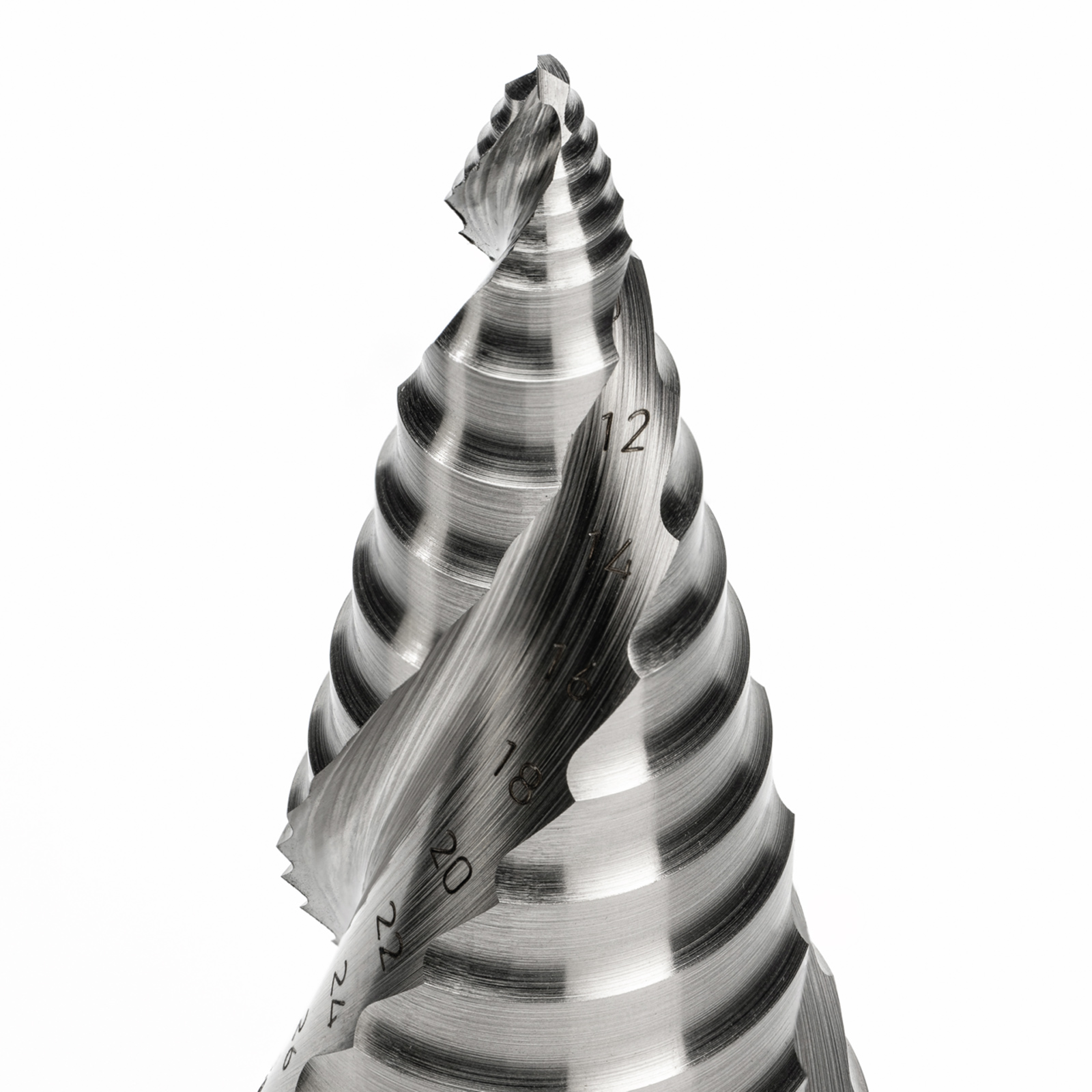 Effizienz und Präzision – entwickelt für maximale Leistung und Langlebigkeit bei der Zerspanung von Werkstoffen bis 4 mm Stärke. In einem Arbeitsgang werden Bleche angebohrt, aufgebohrt und entgratet. Ausgestattet mit der innovativen FLOWSTEP® Spitze, ermöglicht dieses Werkzeug ein schnelles und sicheres Anbohren. Mit 5 % Kobaltanteil für eine gesteigerte Härte und Verschleißfestigkeit, ideal für die Bearbeitung von robusten Werkstoffen wie Edelstahl und legierten Stählen.