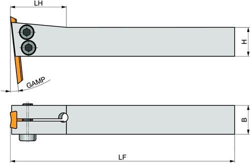 Side lock Scarfing Trägerwerkzeug mit 6° Freiwinkel für 60mm rechteckige Schwert mit einer Hauptschneidenlänge von 13.05mm (Bezeichnung LDGN 130560... ) · Höhe 25mm · Breite 25mm und 200mm lang zum entgraten von Rohren und Röhren Weitere technische Eigenschaften: · Axialer Freiwinkel: 6Grad · Bruttogewicht: 998,9g · Fräserdesign: XLCD(N) EXT · Funktionshöhe - Metrisch: 25mm · Funktionslänge - Metrisch: 200mm · Klemmtypcode: System X · Kopflänge - Metrisch: 50mm · Nettogewicht: 970g · Schaftbreite - Metrisch: 25mm · Schafthöhe - Metrisch: 25mm