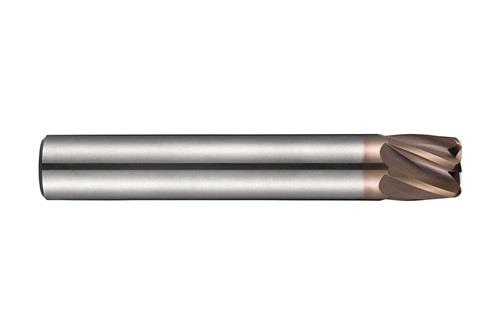 Extra kurzer hochvorschub-schaftfräser mit 6 Schneiden · Durchmesser 10mm mit 10mm Schnittlänge · 75mm Gesamtlänge und 2mm Eckenradius · gemäß DORMER Standard mit einem 10mm Zylinderschaft · VHM mit TiSiN Beschichtung · 25° Helix und 0° Spanwinkel zum Planfräsen · Kopierfräsen · Rampenfräsen und Helikalfräsen in gehärtete Materialien Weitere technische Eigenschaften: · Schafttoleranz: h6 · Drallwinkel: 25