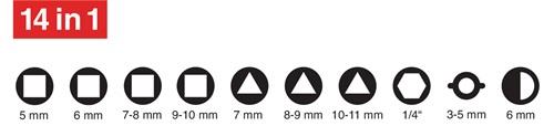 für fast alle technischen Schließungen z. B. in der Gas- und Wasserversorgung, Klima- und Belüftungstechnik, Revisionsklappen, Verriegelung bei Straßenlampen, Abfallbehälter, Müllcontainer usw. aus Zinkdruckguss mit Karabinerhaken an Kette Funktionen: 1. Innenvierkant 5 mm 2. Innenvierkant 6 mm 3. Innenvierkant 7 - 8 mm 4. Innenvierkant 9 - 10 mm 5. Innendreikant 7 mm 6. Innendreikant 8 - 9 mm 7. Innendreikant 10 - 11 mm 8. Buntbart 3 - 5 mm 9. Halbmond 6 mm 10. Bitaufnahme 6,3 mm (1/4”)