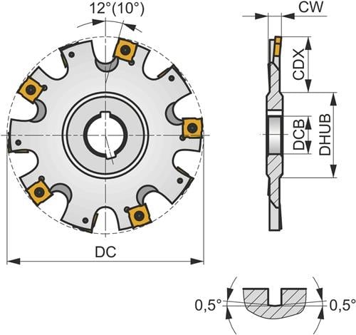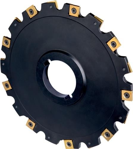 Scheibenfräser mit positiver/negativer Geometrie zum spannen von 18 Stück SNHQ 1203.. doppelseitigen Wendeschneidplatten · Schnittdurchmesser 200mm mit 90° Anstellwinkel und 50mm Verbindungsbohrung gemäß DIN 8030 · zum tiefen Nutfräsen mit einer schnittbreite von 6mm Weitere technische Eigenschaften: · Anzahl peripherer Kanten im Werkzeug: 18 · Axialer Spanwinkel: -0,5Grad · Bruttogewicht: 1781g · Fräserdesign: S90SN · Klemmtypcode: S - Schraubklemmung durch Bohrung · Maximale Drehzahl: 5300rpm · Maximale Einstechtiefe - Metrisch: 62mm · Nabendurchmesser - Metrisch: 72mm · Nettogewicht: 1400g · Radialer Spanwinkel: 2,5Grad · Schaft: Aufsteckfräser DIN 8030 – Scheibenfräser · Schneiddurchmesser - Metrisch: 200mm · Schneidrichtung: Neutral · Schnittbreite - Metrisch: 6mm · Spannbohrungsdurchmesser - Metrisch: 50mm · Wendeplatten Indexzahl: 18