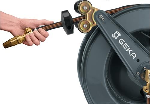 GEKA® plus Automatischer Schlauchaufroller · pulverbeschichtete Stahlkonstruktion · automatischer Rückzug des Schlauchs · für Wand-, Boden- und Deckenmontage · fertig montiert und sofort einsatzbereit · schwenkbare Wandhalterung separat erhältlich Material: Gehäuse: pulverbeschichteter Stahl Abmessungen: 61 x 33 x 53 cm Weitere technische Eigenschaften: · Gewicht: 38,2kg