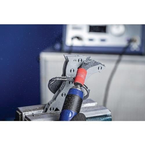 für Schleifen an harten, zähen und schlecht wärmeleitenden Werkstoffen · selbstschärfendes Keramikkorn · schleifaktive Zusätze im Belag erzielen eine deutlich höhere Abtragsleistung, verhindern das Zusetzen und bewirken einen kühleren Schliff · GSB = Großpack Schleifhülsen · Lieferung ohne Gummiträger Weitere technische Eigenschaften: · Antriebsart: Biegwellenantrieb, Geradschleifer · Anwendungsempfehlung: Für beste Leistung bei einer empfohlenen Schnittgeschwindigkeit von 20-30 m/s einsetzen. Für einen leichten Wechsel der Schleifhülsen diese unter leichter Rechtsdrehung auf- und abziehen. Dabei den Schleifhülsenträger in den Werkzeugantrieb eingespannt lassen. Für einen sicheren Sitz der Schleifhülse die Mindestdrehzahl des Schleifhülsenträgers einhalten. Für den Werkstoff geeignetes Schleiföl verwenden, um die Standzeit und Schleifleistung der Werkzeuge deutlich zu erhöhen. · Bearbeitbare Werkstoffe: Bronze, Kobaltbasislegierungen, Grau-/Sphäroguss (GG/GJL, GGG/GJS), Nickelbasislegierungen (z. B. Inconell und Hasteloy), Titan, Aluminium, Temperguss, Edelstahl (INOX) · Bearbeitungsaufgaben: Entgraten, Schweißnahtbearbeitung, Flächenbearbeitung, Schärfen, Aufrauen, Stufenweises Feinschleifen, Egalisieren, Kantenbearbeitung · Bestellhinweise: Schleifhülsenträger bitte separat bestellen. · Ø Innen: 15mm · RPM, opt., bis: 36000RPM · RPM, opt., von: 26000RPM · Sicherheitshinweise: Die maximal zulässige Umfangsgeschwindigkeit beträgt 30 m/s. Die angegebene maximal zulässige Drehzahl darf aus Sicherheitsgründen nie überschritten werden. Schleifhülsen nicht über den Schleifhülsenträger überstehen lassen. · Vorteile: Sicherer Sitz der Schleifhülse auf dem Schleifhülsenträger durch Ausdehnen des Trägers im Einsatz. Die Verpackungsgröße ist ideal für den industriellen Bedarf geeignet. Herausragende Standzeit durch spezielles Fertigungsverfahren – auch unter härtesten Einsatzbedingungen. Höchste Wirtschaftlichkeit durch besonders hohen Materialabtrag und hohe Aggressivität des Schleifmittels.