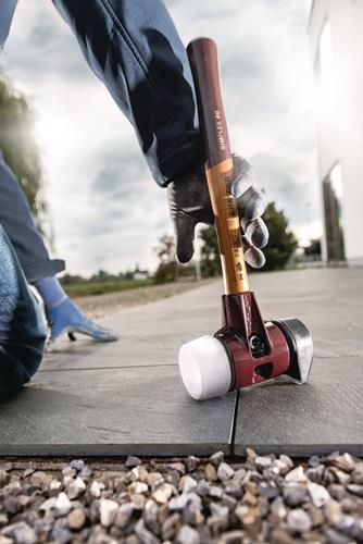 2-teiliges Spanngehäuse aus Temperguss · Schlageinsätze und Simplex-Stiel sind leicht auswechselbar durch Lösen bzw. Spannen der Innensechskant-Spannschraube · Schlagköpfe abriebfrei · mit je 1 Stück aus Gummikomposition, schwarz, mit Standfuß (mittelhart) und Superplastik, weiß (mittelhart) · verschleißarm · Anwendungsbereiche: Garten-/Landschaftsbau, Pflasterarbeiten, Randsteine setzen, Mauerwerk/Treppen setzen, Zaunbau, Gerüstbau, Zeltbau, Fertighausbau, Zimmerei, Wartungs-/Reparaturarbeiten Weitere technische Eigenschaften: · Stiel: Holz