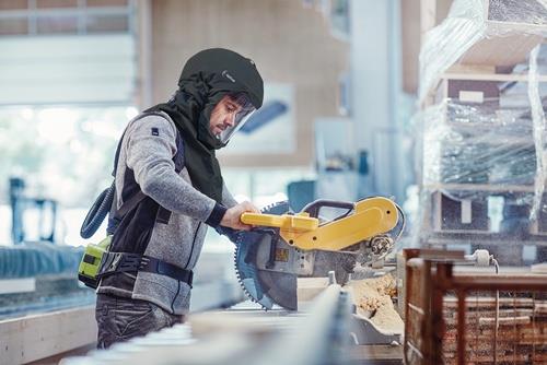 kurze Version · mit Frischluftanschluss, schwarz · ultraleichte · TH3 zertifiziert · Anwendungsgebiete: Holzverarbeitung, Landwirtschaft, Weinbau, Gemüse- und Obstanbau, Lackierarbeiten, Abbrucharbeiten, Bauarbeiten