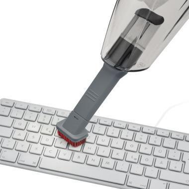 3-in-1 Handstaubsauger. Kabellos. Saugt Staub und Flüssigkeiten. Leicht · schnell und flexibel einsetzbar. Gummidüse zum Saugen von Flüssigkeiten. Fugendüse mit zusätzlichem Bürstenaufsatz zur Reinigung schwer erreichbarer Stellen. Einfache Behälterentleerung. Keine zusätzlichen Kosten für Beutel oder Filter. Leicht zu reinigender Permanent-Filter. Überlade- und Tiefentladeschutz. Ladekontrollleuchte.