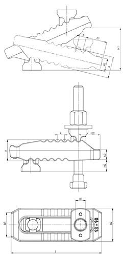 mit Gegenhalter · verstellbar · kompl. mit Spannschraube DIN 787, Scheibe DIN 6340 und Mutter DIN 6330B · stufenlos verstellbar, vergütet, verzinkt mit unverlierbarem Druckstück und Gegenlager · Anwendung: Das Krokodil wird bei allen Spannaufgaben, bei denen über T-Nuten und Gewindebohrungen gespannt wird, eingesetzt. Das Druckstück und der Gegenhalter sind unverlierbar mit der Spannpratze verbunden, somit ist das Krokodil schnell einsatzbereit. Die Spannpratze ist mit zwei Spannnasen ausgestattet und kann je nach Einsatzfall einfach umgedreht werden. Dadurch werden alle Einsatzgebiete, bei der spanabhebenden und spanlosen Bearbeitung (z.B. Spritzgießen und Pressen) abgedeckt. Weitere technische Eigenschaften: · A1: 21mm · L: 150mm · B3: 41mm · K: 12mm · E1: 35mm · A2: 17mm · Gewicht: 1798g · B2: 55mm · A: 36mm · B1: 17mm · Länge: 150 mm · E2: 36mm · H2: 20mm · H1: 0-70mm