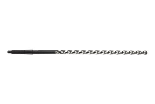 Extra langer Bohrer Bohrer mit Kegelschaft · Durchmesser 14mm mit einer Gesamtlänge von 410mm und einer Schneidenlänge von 275mm gemäß DIN 1870 (2) Standard mit 130° Spitzenwinkel · HSS mit blank und dampfangelassen · hochspiralisiert und parabolischem Kern für 20xD Bohrungen ohne Zentrierung in Stahl Weitere technische Eigenschaften: · Nenn-Ø-Toleranz: h8 · Baulänge: Extra lang · Schneidrichtung: Rechts · Spannutlänge: 275mm · Schaftgröße: MK 1 · Qualität: profilgeschliffen