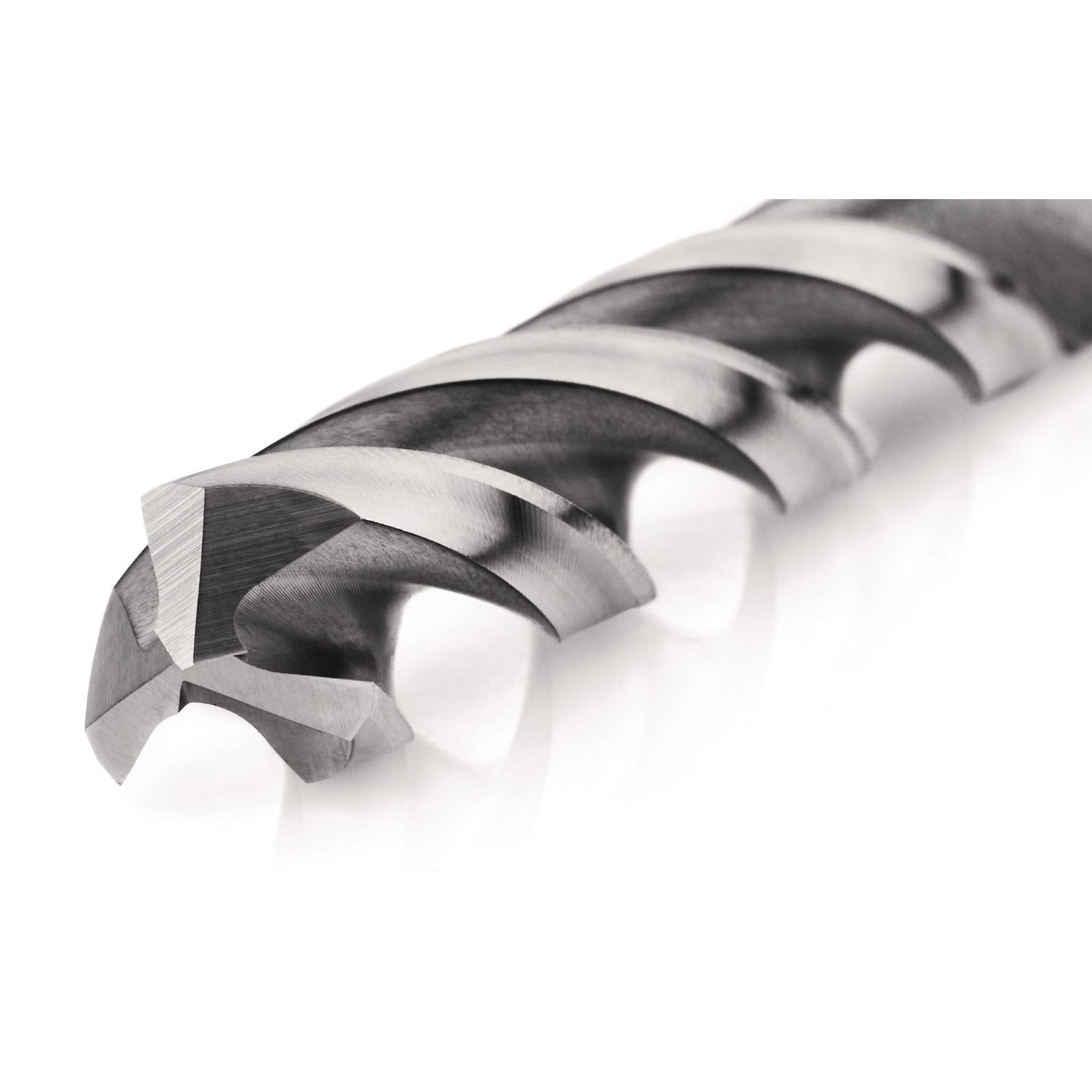 HSS-Co · DIN 338 · Typ N · Spitzenwinkel 130 ° · profilgeschliffen · mit Zylinderschaft · 3 Schneiden · rechtsschneidend · mit Kreuzanschliff · für alle normalen Bohrarbeiten in Baustählen, unlegierte und legierte Stähle bis 850 N/mm², Gusswerkstoffe, Alu-Knetlegierung, Alu-Gusslegierung · Vorteile: · besonders genaue runde Bohrungen ähnlich Reibniveau (maschinenabhängig) von bis zu IT9 · durch die 3 Schneiden sind deutlich höhere Vorschübe von bis zu 60% möglich · kein Abrutschen des Bohrers durch besondere Spitzengeometrie · kein Verhaken beim Bohren in vorhandene Bohrlöcher · geringerer Verschleiß durch Verteilung der Arbeit von 2 auf 3 Schneiden Weitere technische Eigenschaften: · Baulänge: kurz · Schneidrichtung: rechtsschneidend · Vorschub in Stahl bis 800 N: 0,2mm/U · Qualität: profilgeschliffen