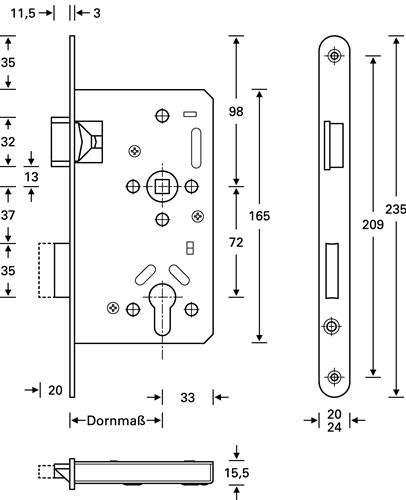 - 1x SSF Panik-Einsteckschloss Ser.20 APE Fkt.E rd 24/55/72/9mm DIN re.VA