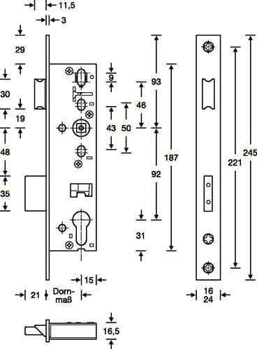 - 1x SSF Panik-RR-Einsteckschl.B DIN li.auswärts 24/245/40/92/9mm Kl 3 ktg