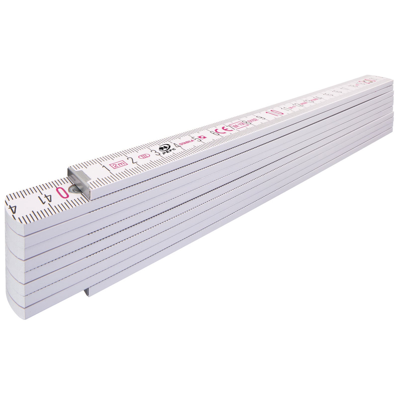 "STABILA Holz-Gliedermaßstab Type 1407, 2 m, weiß, metrische Skala, mit Winkelschema, PEFC-zertifiziert"
