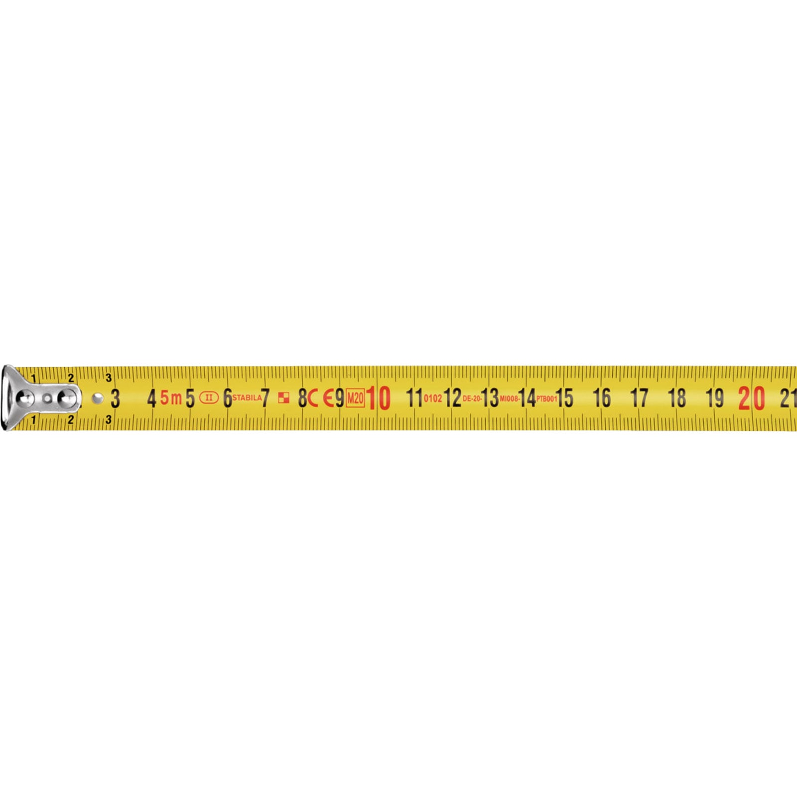 "STABILA Taschenbandmaß BM 100, 8 m, Maßband mit metrischer Skala, bruchsicheres ABS-Gehäuse, beweglicher Anfangshaken, Gürtel-Clip, MID-Genauigkeit - 19581"