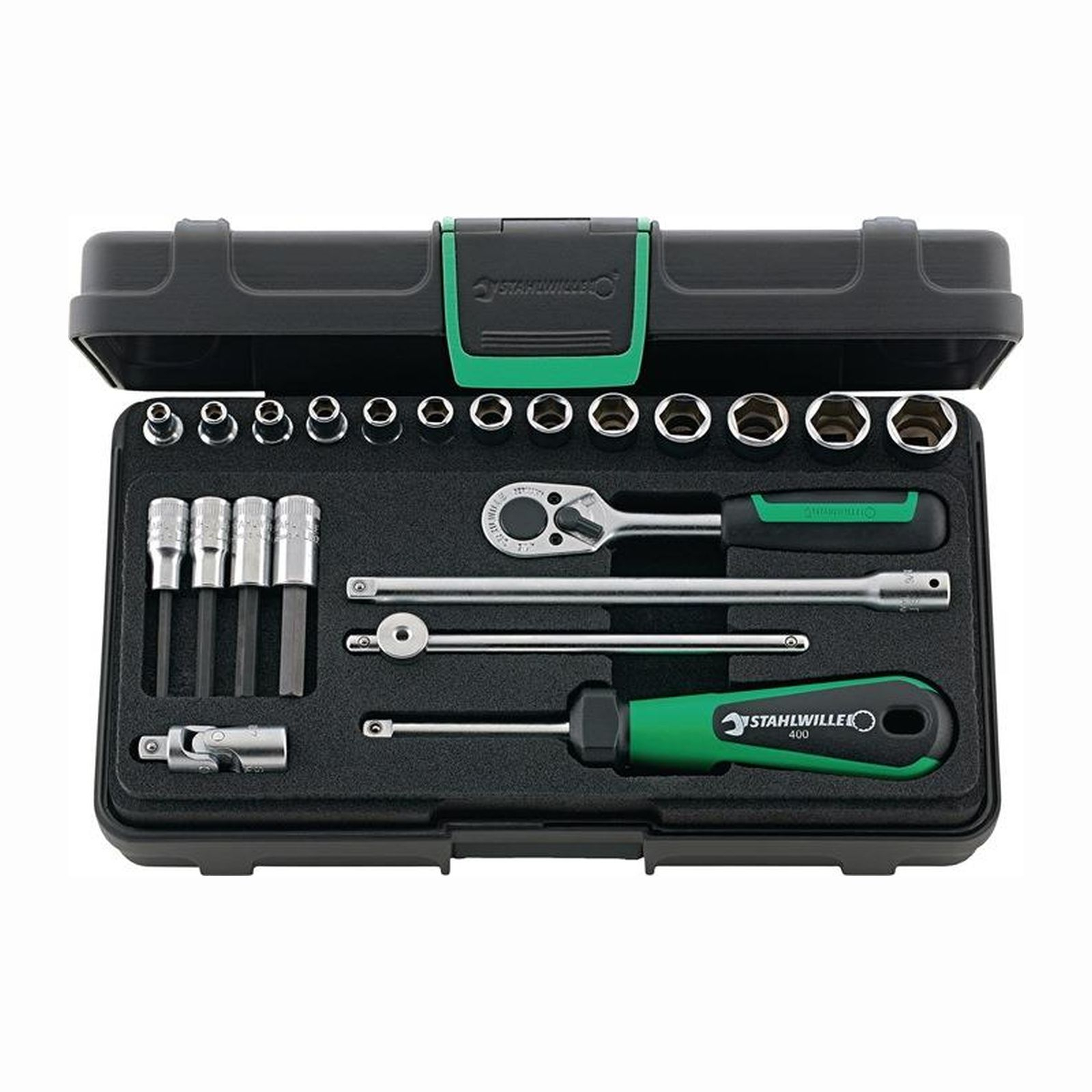 - 1x Stahlwille Steckschlüsselsatz 40/44/17/5 KN 22tlg. 1/4″ SW 3,5-13 mm Anzahl Zähne 22 6-kant bestehend aus: