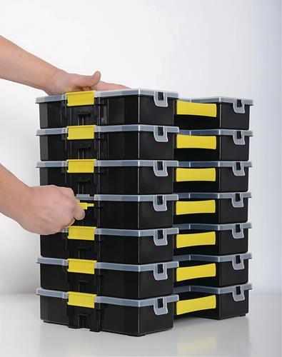 - Drei SortMaster Junior™ Sortimenter können schnell und bequem zu einem Organiser zusammengesteckt werden