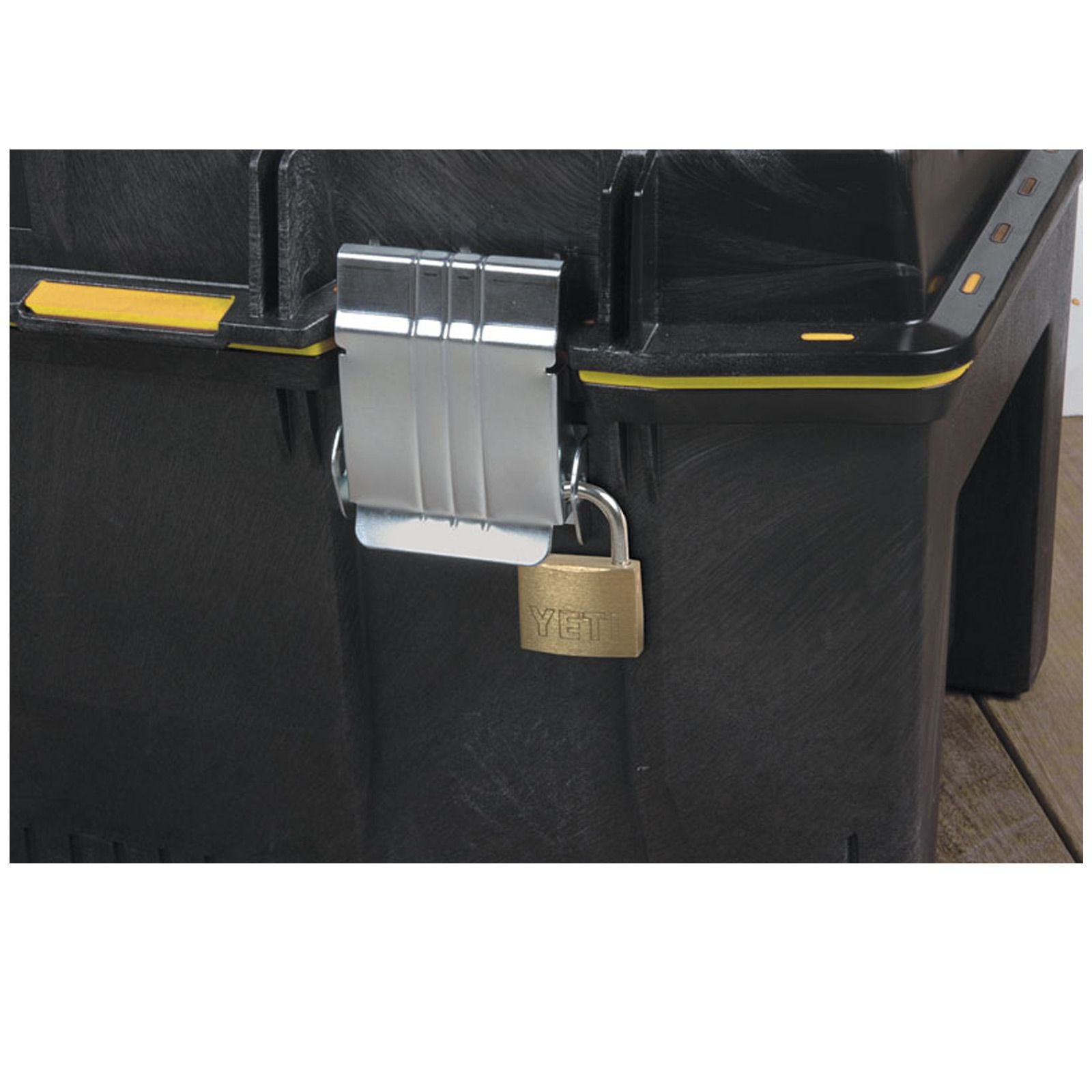 - Große rostfreie Metallschließen mit Aussparungen für Vorhängeschloß