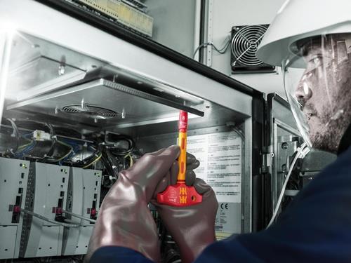 VDE-isolierter Quergriff- Ratschenschraubendreher Weitere technische Eigenschaften: · Griffdurchmesser: 99mm · Grifflänge: 49mm · GS - Geprüfte Sicherheit: ja · Icon links: Innenvierkant · Klingenlänge: 130mm · Klingenlänge (in Zoll): 5 1/8"Zoll · Rückholwinkel: 4,5Grad · Schnelldrehhülse VDE Quergriff: ja