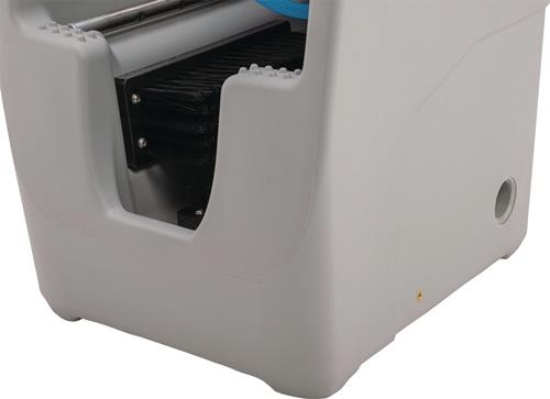 gefertigt aus robustem und alterungsbeständigem Polyethylen · ausgestattet mit drei festen und einer beweglichen Handbürste · Wasseranschluss 12,70 mm (½“), Leitungen aus Edelstahl · Bürstenhalter mit integrieter Handwaschfunktion · mit integrierter Sammelwanne zum Sammeln und Ableiten des ablaufenden Schmutzwassers IG 1 1/2″, wahlweise rechts oder links · max. Betriebsdruck 6 bar · max. Wassertemperatur +40 °C