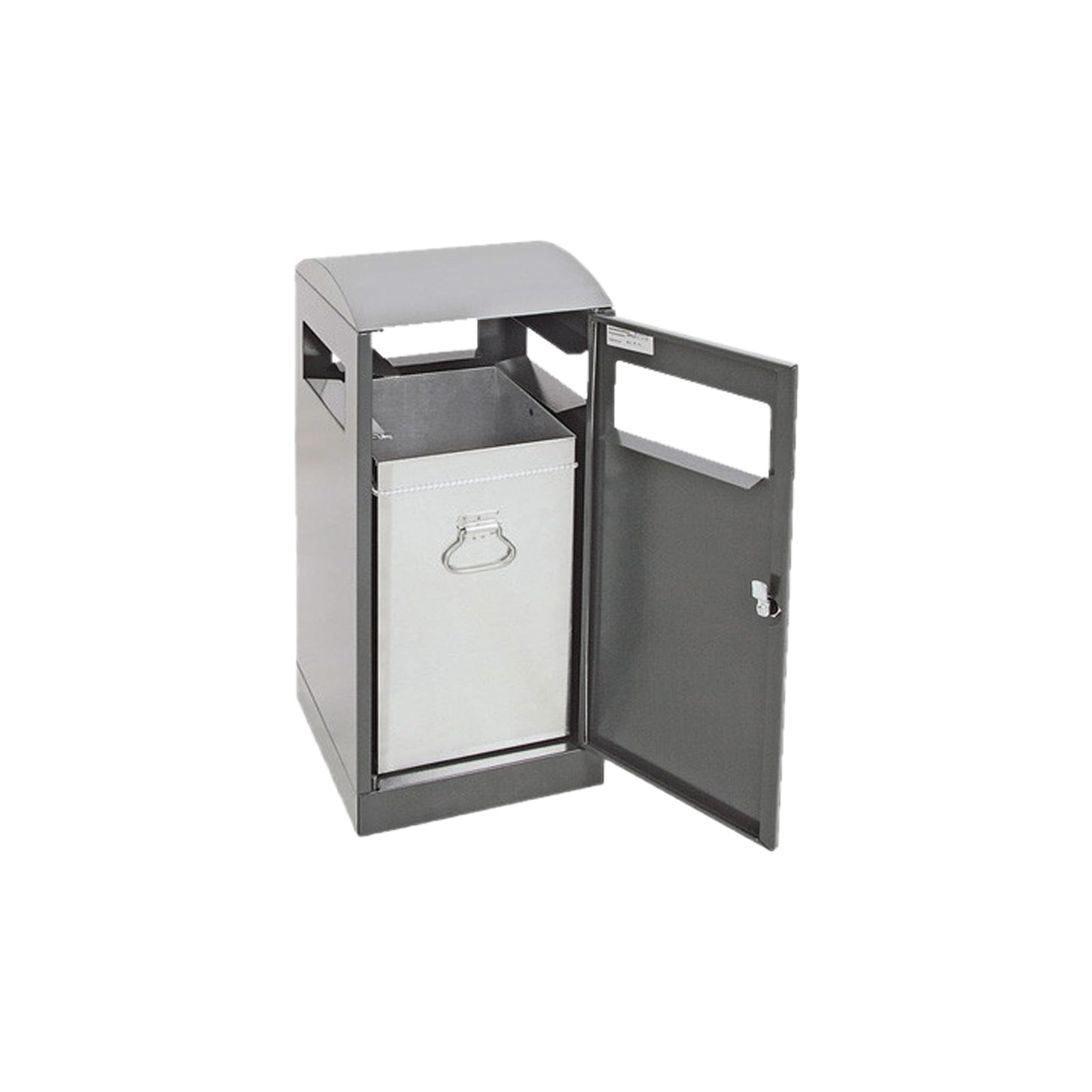 - Sammler für die Außenaufstellung, mit Kopfelement aus gebürstetem Edelstahl. Aus vollständig verzinktem Qualitätsstahlblech gefertigt und hochwertig strukturiert pulverbeschichtet (licht- und wetterstabile Beschichtung). Im Behälterinnern sorgt ein verzinkter Innenbehälter aus Stahlblech für für optimale Abfallaufnahme. Das Fassungsvermögen beträgt 40 Liter. Der Innenbehälter wird durch eine frontseitig eingelassene und per Vierkantschloss verschließbare Flügeltüre entnommen (Vierkantschlüssel werden mitgeliefert). Abfalleinwurf von allen Seiten möglich. Frontseitig sorgen 2 Stellfüße für den Ausgleich bei Unebenheiten. Mit den serienmäßig mitgelieferten Befestigungsprofilen kann der Behälter im Boden verschraubt werden. Der Artikel wird vollständig in Deutschland hergestellt und wird in einer TÜV-zertifizierten Produktionsstätte hergestellt. Der Hersteller gewährt eine Garantie von 5 Jahren. Farbgebung Korpus: anthrazitgrau RAL 7016, Farbgebung Kopfelement: Edelstahl