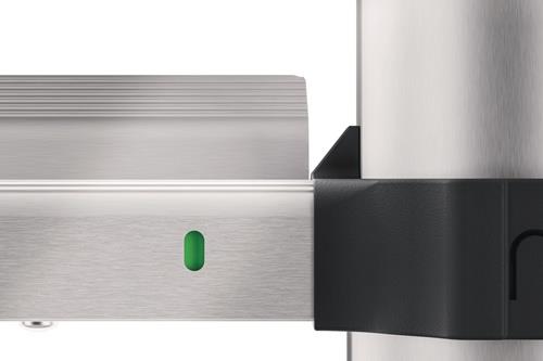 Aluminium · Einhand-Entriegelungssystem · Sprosse für Sprosse ausziehbar · farbige Verriegelungsanzeige · Sprosse mit Antirutsch-Riffelung · gummierter Wandstoßschutz für oberflächenschonendes Anlegen an Wände · platzsparend zusammenklappbar · mit Gurtbandfixierung für einfachen Transport · runde Holme mit angenehmer Haptik · ab 11 Sprossen mit Quertraverse Weitere technische Eigenschaften: · max. Gesamtbelastung: 150kg · Oberfläche: eloxiert · äußere Breite: 460mm · Leiterlänge: 2650mm · Stufentiefe: 80mm · prüfpflichtig: ja