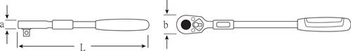 12,5 mm (1/2 ″)-Vierkantantrieb · Chrom-Alloy-Stahl · verchromt · mit Hebelumschaltung · 2-Komponenten-Griff · Länge wahlweise 410 - 465 - 520 - 575 - 630 mm Rückschwenkwinkel 10° 36 Zähne Weitere technische Eigenschaften: · Material: Chrom-Alloy-Stahl · Modell: 516 · a: 40mm · Arbeitswinkel: 10° · Breite mm (b): 40mm · DIN: DIN 3122/ISO 3315 · Gewicht: 1100g