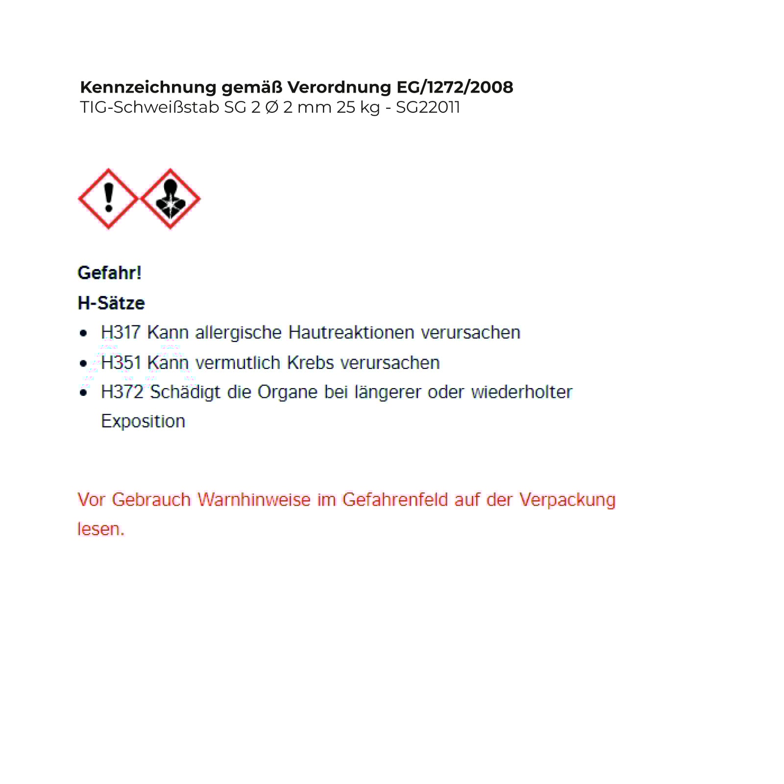 "TIG-Schweißstab SG 2 Ø 2 mm - SG22011"