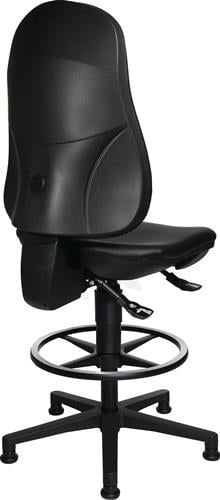 Merkmale Typ: Point 70 C Ausführung: Permanentkontakt Gestellausführung: Bodengleiter + Fußring Sitz/Rückenlehne: Kunstlederpolster Polsterfarbe: schwarz Sitzhöhenverstellung: 590-840 mm Marke: TOPSTAR