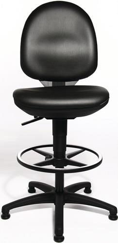 ergonomisch geformte Sitzfläche und Rückenlehne aus strapazierfähigem Kunstleder stufenlose Sitzhöhenverstellung Rückenlehne mit Lendenwirbelstütze, in der Höhe und Tiefe verstellbar stabiles Polyamid-Fünffußkreuz, schwarz mit abriebfesten Kunststoff-Bodengleitern und höhenverstellbarem Fußring Ausführung: Permanentkontakt Gestellausführung: Bodengleiter + Fußring Sitz/Rückenlehne: Kunstlederpolster Polsterfarbe: schwarz Sitzhöhenverstellung: 590-840 mm Marke: TOPSTAR
