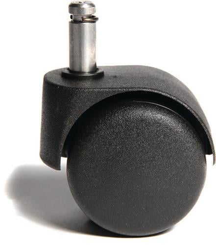 lastabhängig gebremste Sicherheits-Doppelrollen Satz mit 5 Rollen Ausführung: für weiche Böden Rollen-Ø: 50 mm Stift-Ø: 10 mm passend für: Bürodrehstuhl Stiftlänge: 23 mm Marke: TOPSTAR