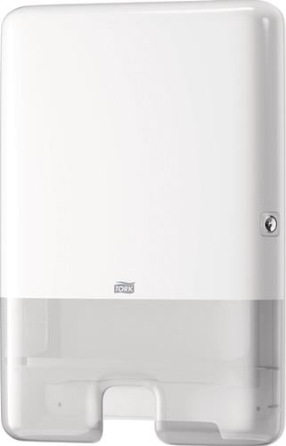 für Multifold Handtücher schlagfestes Kunststoffgehäuse abschließbar schnelle hygienische Einzelblattentnahme (Multifold) sparsamer Verbrauch halbtransparentes Sichtfenster weiß
