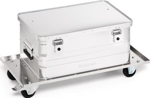 Tragfähigkeit 50 kg verzinkt 2 Lenk-und 2 Bockrollen, 1 Lenkrolle mit Feststeller Gummibereifung, Rad Ø 80 x 25 mm für Aluminiumboxen 29 l bis 90/91 l und Aluminium Transportbox 28 l bis 80 l Gesamttragfähigkeit: 50 kg Rad-Ø: 80 x 25 mm Gestell: Stahl verzinkt Farbe: silber Bereifung: Gummi Ausführung: für Aluminiumboxen 29 l - 91 l
