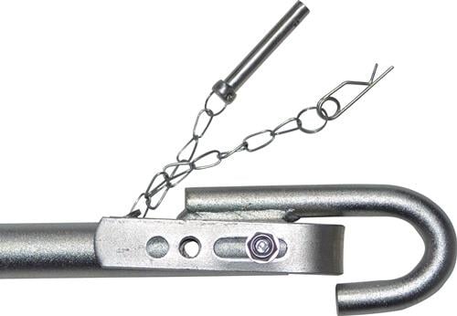 - zum Einhängen in die gesetzlich vorgeschriebenen Abschleppösen, mit Einsteckbolzen zum Fixieren und Sichern
