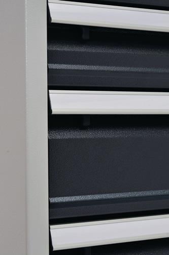 - Alle Schubladenschränke werden mit einer hochwertigen und robusten Pulverbeschichtung (Strukturlack) geliefert Weitere technische Eigenschaften: