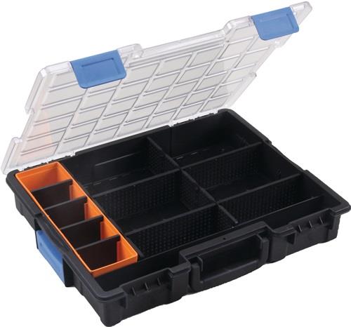 "Sortimentskasten B440xT355xH76mm 12 Fächer 10 Trennstege transp.schwarz - 454270"