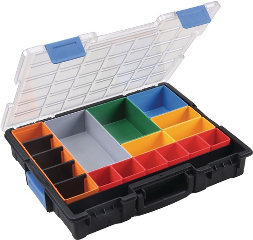 "Sortimentskasten B440xT355xH76mm 18 Fächer 4 Trennstege transp.schwarz - 454230"