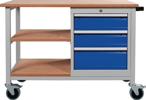 "Werkbank B1200xT540xH880mm Buche Multiplex lichtgrau/signalblau 4 Schubl. - 04.512.03A 7035/5005"