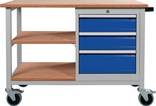 - 1x Werkbank B1200xT540xH880mm Buche Multiplex lichtgrau/signalblau 4 Schubl.