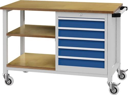 "Werkbank B1200xT540xH880mm Buche Multiplex lichtgrau/signalblau 5 Schubl. - 04.512.05 7035/5005"