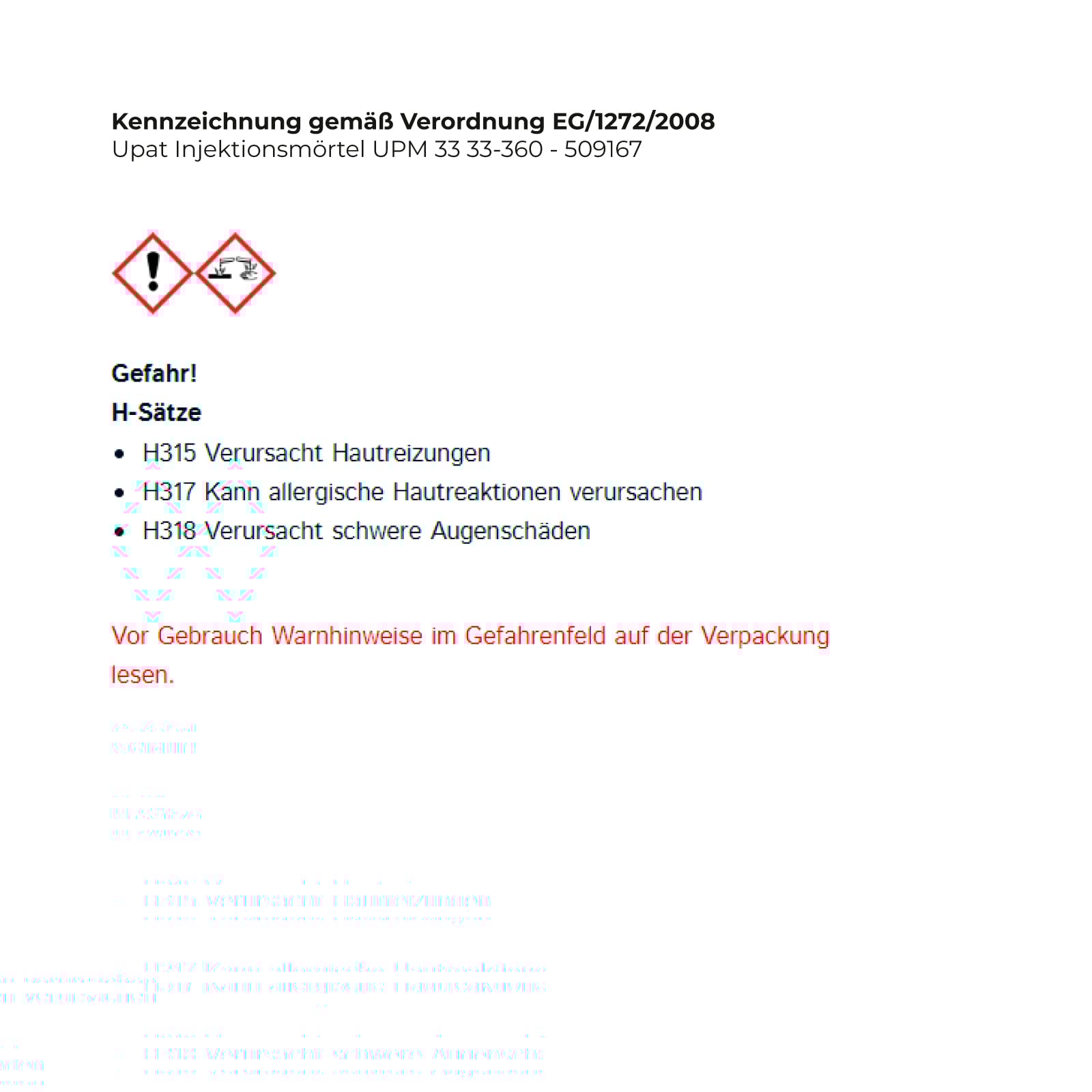 | Ausführung: | UPAT Injektionsmörtel UPM 33 |