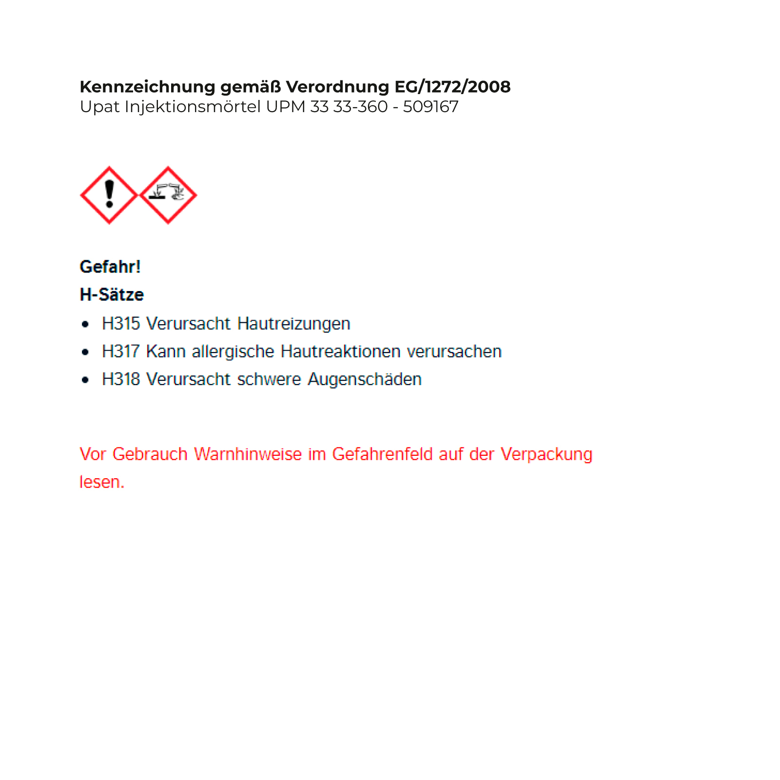 Vor Gebrauch Warnhinweise im Gefahrenfeld auf der Verpackung lesen.