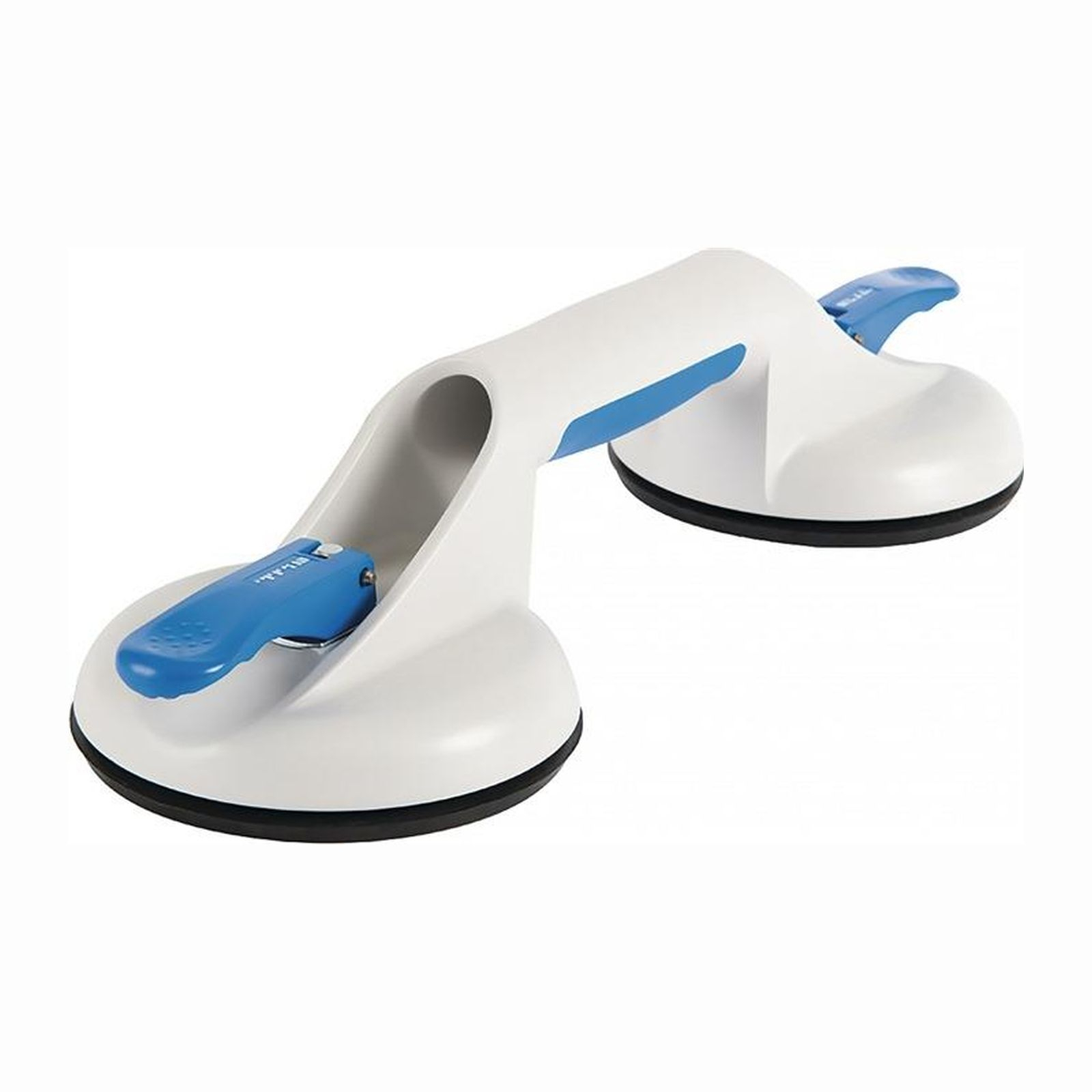 2-Kopf-Kunststoff-Körper mit Längsgriff Vakuumaufbau durch Umlegen der Kipphebel geeignet für alle Materialien mit glatten und gasdichten Oberflächen wie Glas, Kunststoffplatten, Blech, beschichtetes Holz, Marmor, Fliesen etc. Gummischeiben auswechselbar Tragrichtung: parallel Tragfähigkeit: 50 kg Kopf-Ø: 120 mm Körper: Kunststoff Kopfanzahl: 2 Köpfe Marke: VERIBOR
