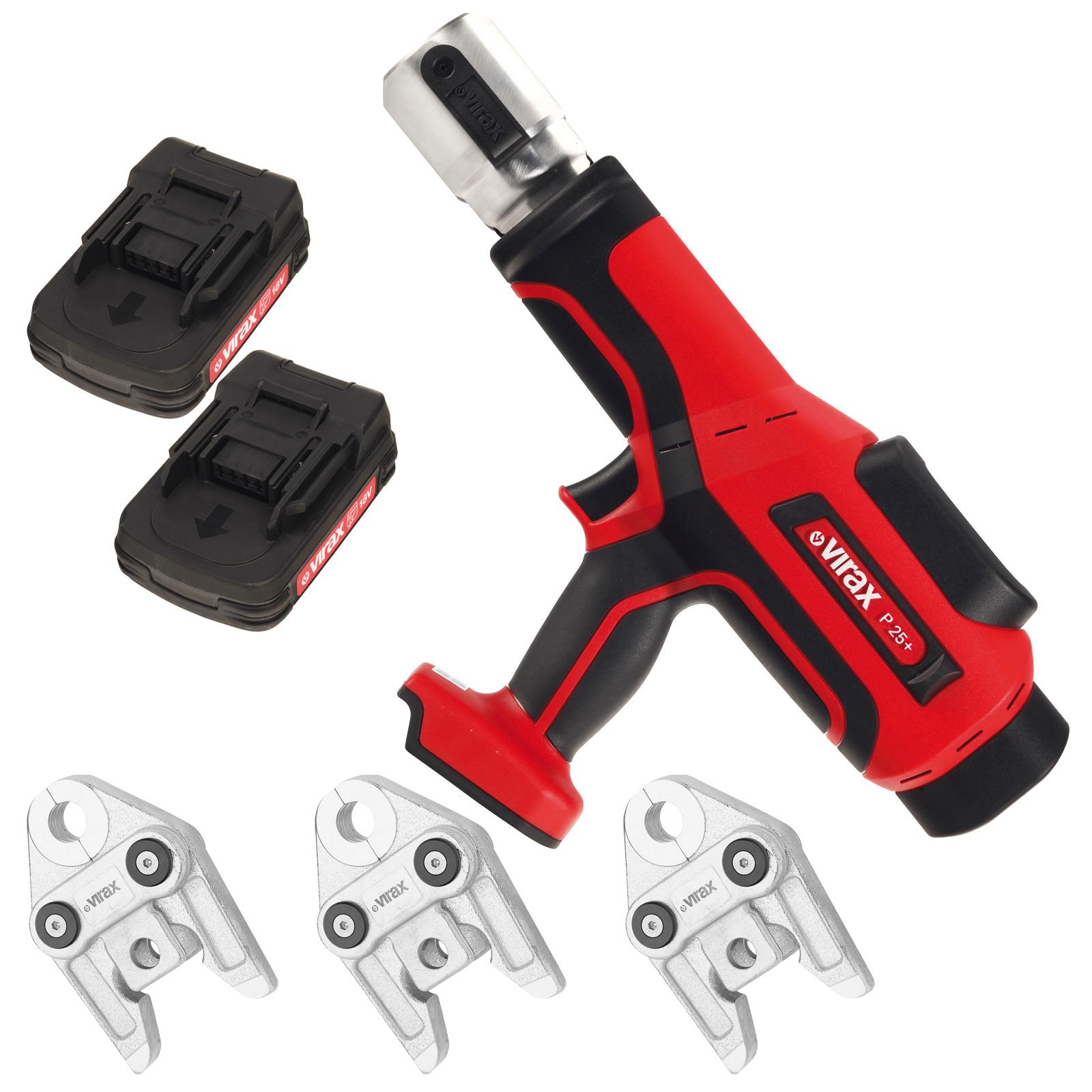 VIRAX Akku-Pressmaschine VIPER P25+ 18V / 2x 1,5 Ah Akku + Ladegerät inkl. Presszangen V15/V22/V28 in VIRABOX