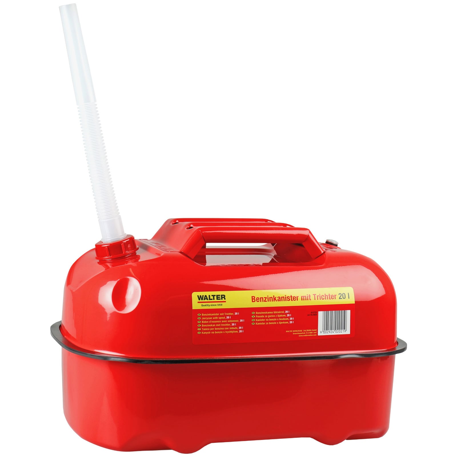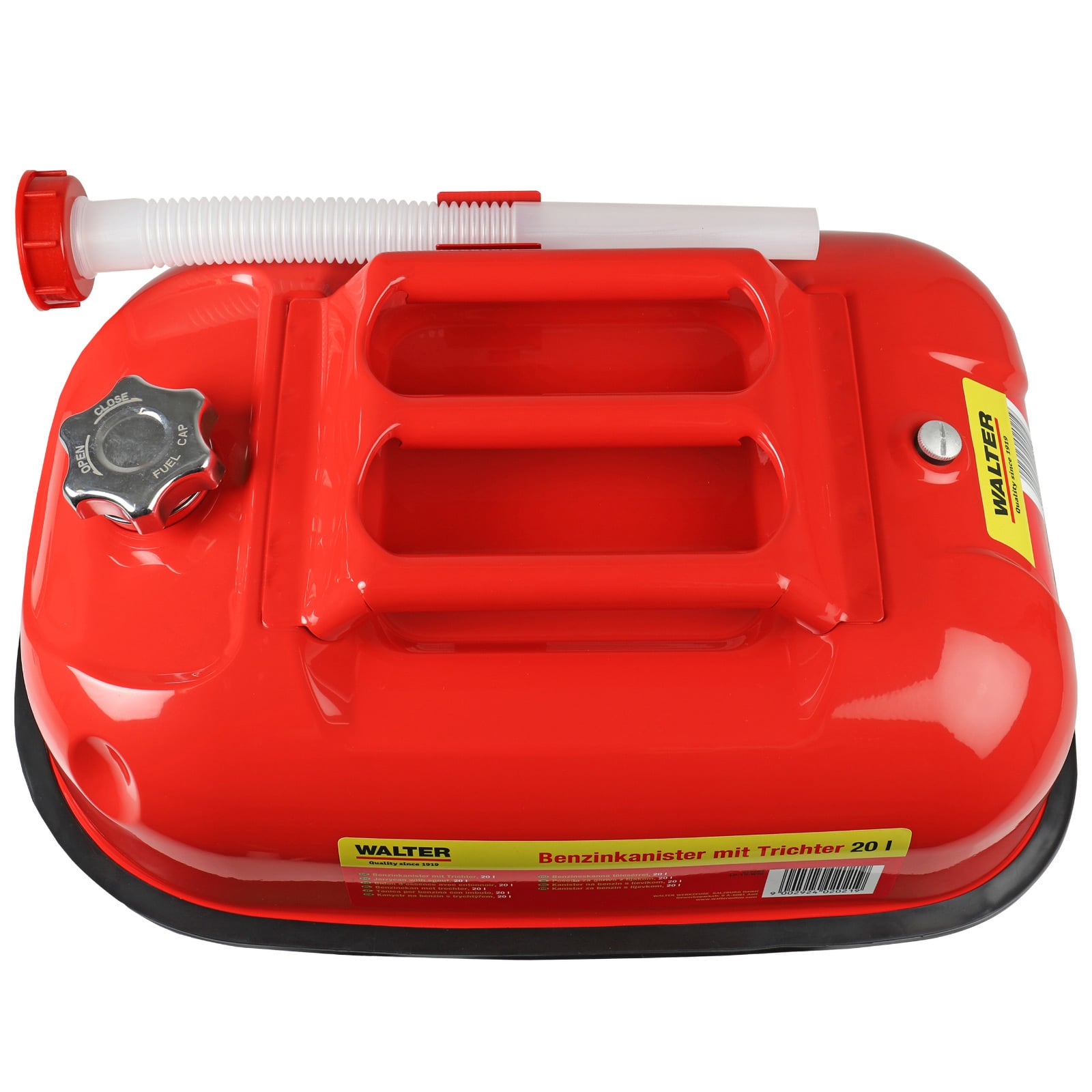 "Walter 20L Horizontaler Benzinkanister mit Trichter - 612723"