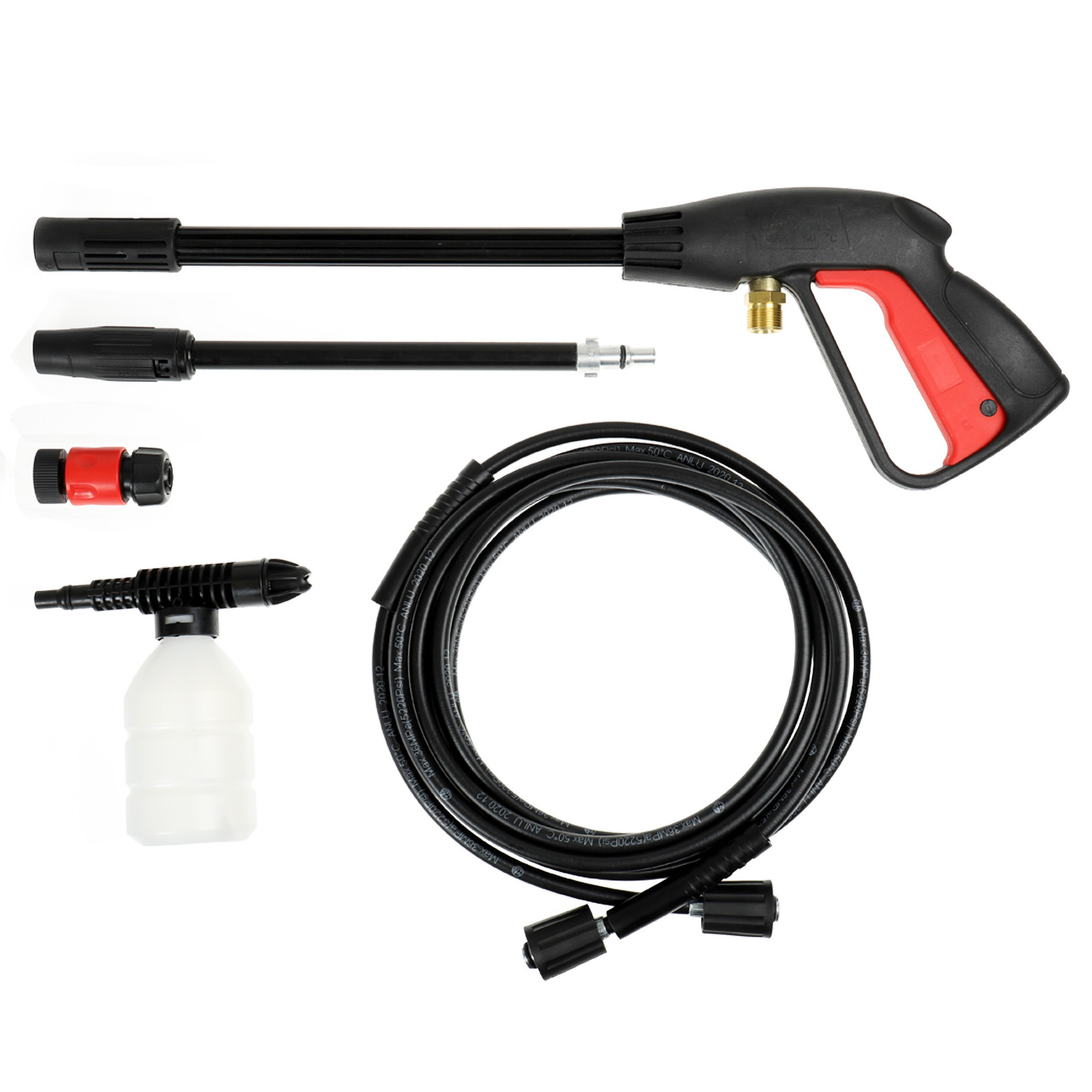 - Die im Lieferumfang enthaltene Sprühpistole verfügt über einen Bajonett-Schnellverschluss. So kann sie ganz einfach und schnell an der Lanzette befestigt werden. Außerdem kann die Strahlform durch Drehen an der Düse zwischen einem schmalen punktgenauen Strahl und einem breiten großflächigen Strahl eingestellt werden.